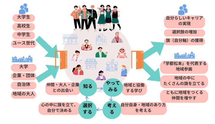 長野県松本市を拠点に、若者が地域・社会と出会い、