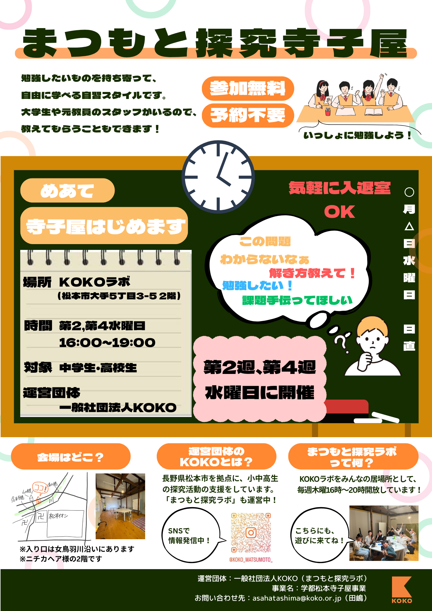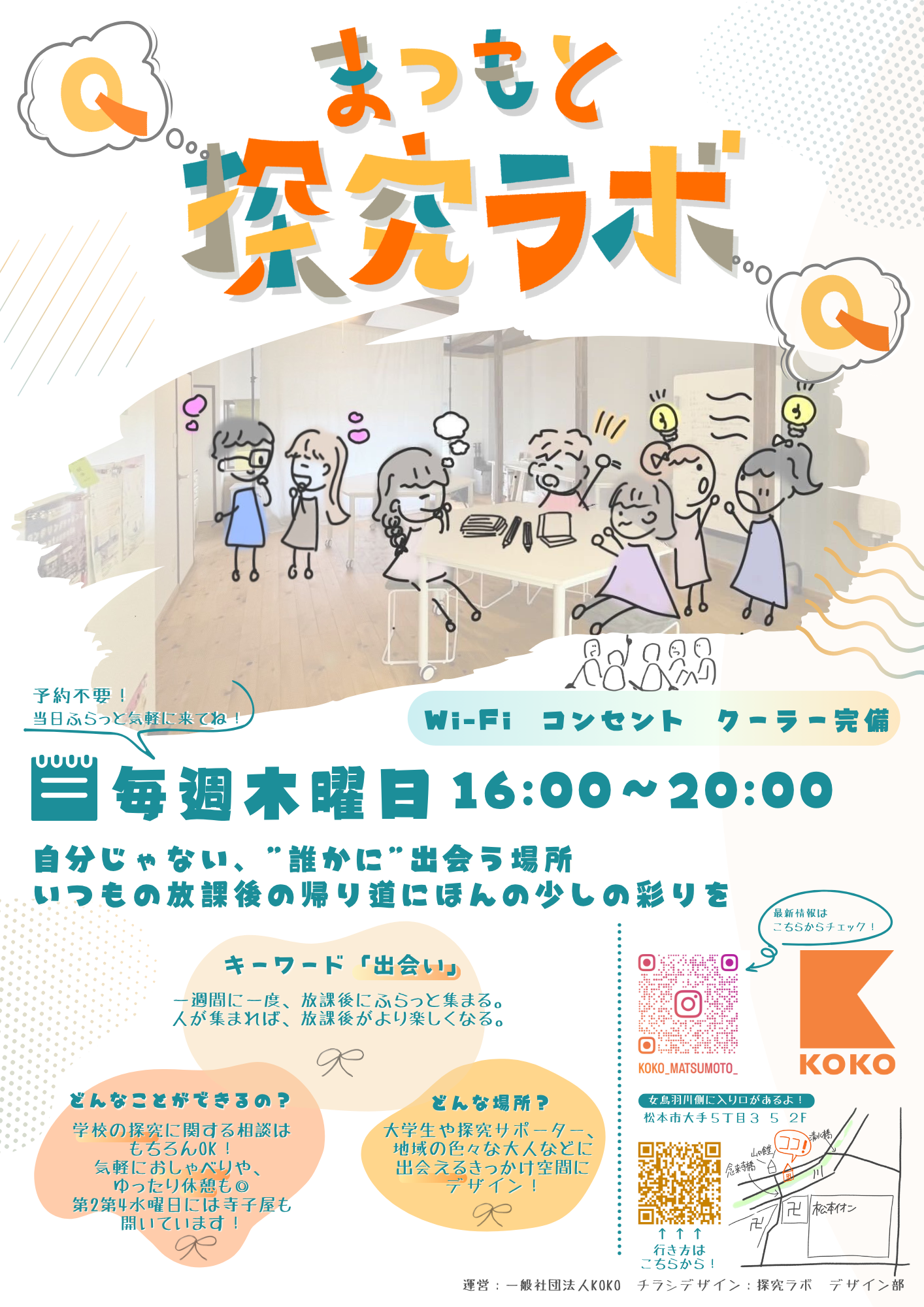 「まつもと探究ラボ」は毎週木曜日の16:00-20:00にオープン!
